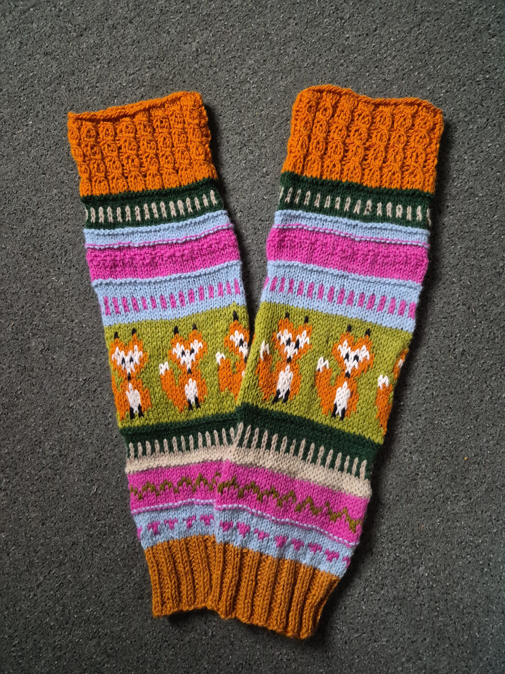 Käsitsi kootud rebase säärised on 100 % villasest lõngast. Sääriste pikkuseks on 46 cm. Lõbusad , rõõmsatoonilised rebase säärised kaunistavad nii kandjat kui pakuvad silmailu teistele.